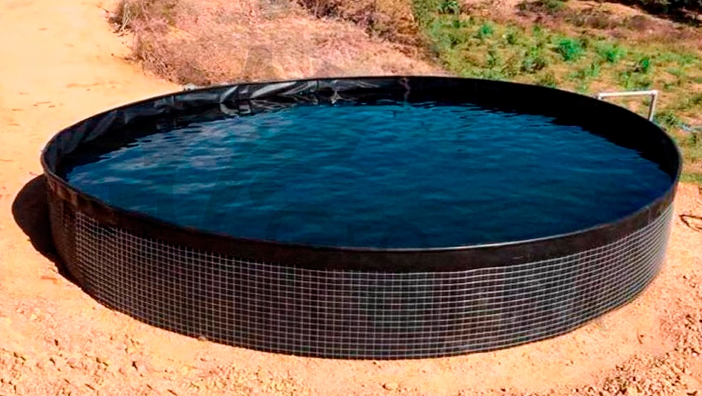 Tanque de Geomembrana HDPE ( Circular — abierto) con estructura de malla electrosoldada ideal para la producción y vida de los PECES.